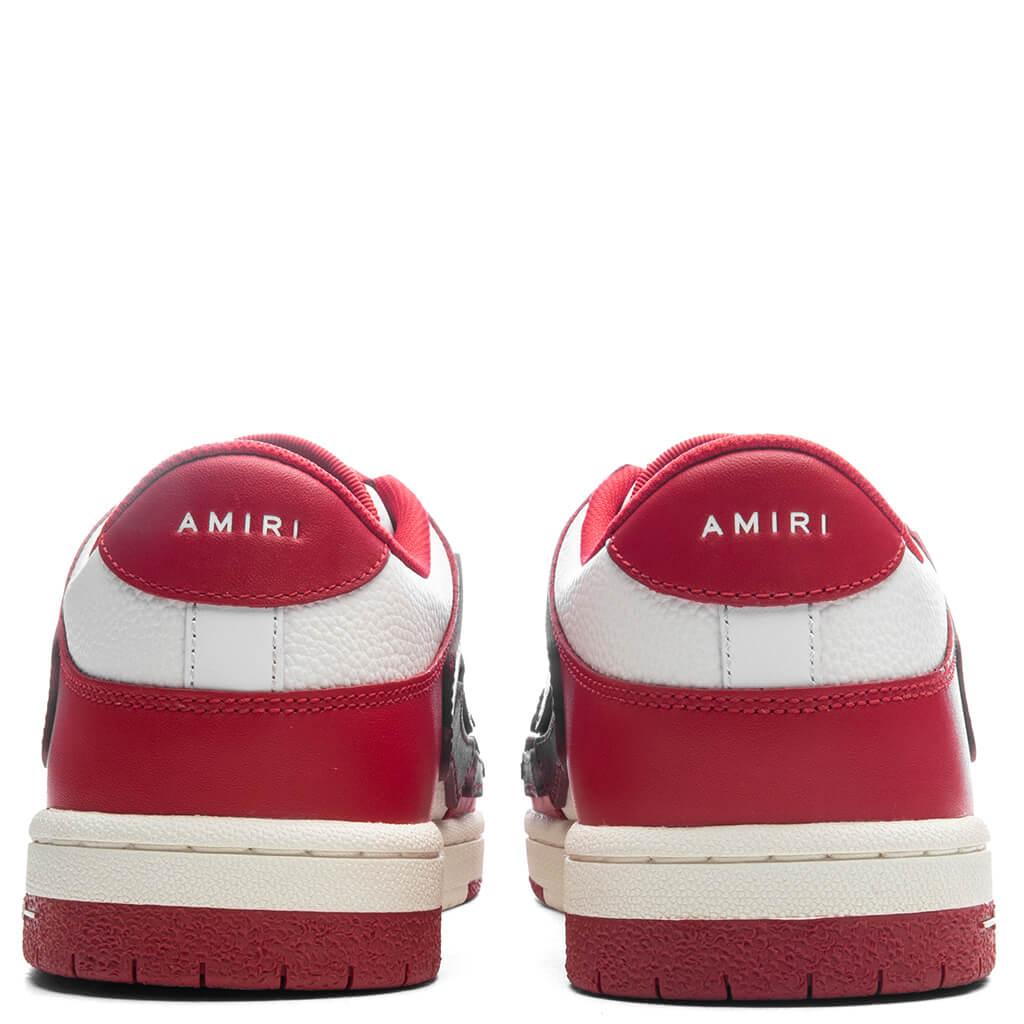 The Skel Top Low in Red/White features a leather upper paired with a durable rubber outsole. This sneaker is designed with a lace-up closure for a secure fit and includes a perforated toe box for breathability. The standout detail is the skeleton logo on the side panels, adding a unique and bold touch to the design. 100% Leather upper Rubber outsole Lace up closure Perforated toe box Skeloton logo on side panels Style No: AMFOSR1047-621-40