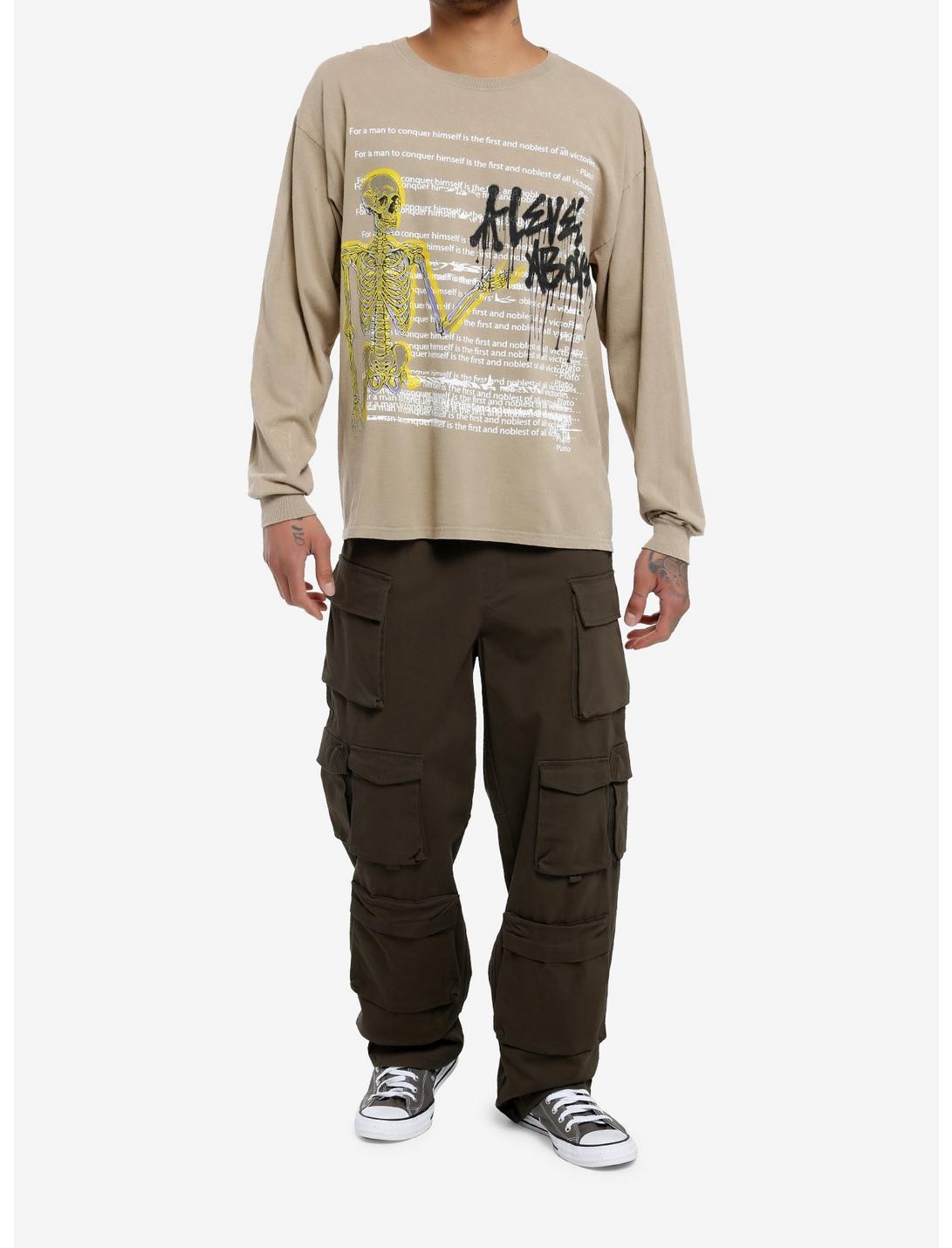 We could all use a little bit of philosophy in our lives! This long-sleeve tee features a yellow outlined skeleton with "A level above" printed over a repeated quote from Plato in the background.100% cottonWash cold; dry lowImportedListed in men's/unisex sizesModel is 6'1''Model wears size Medium