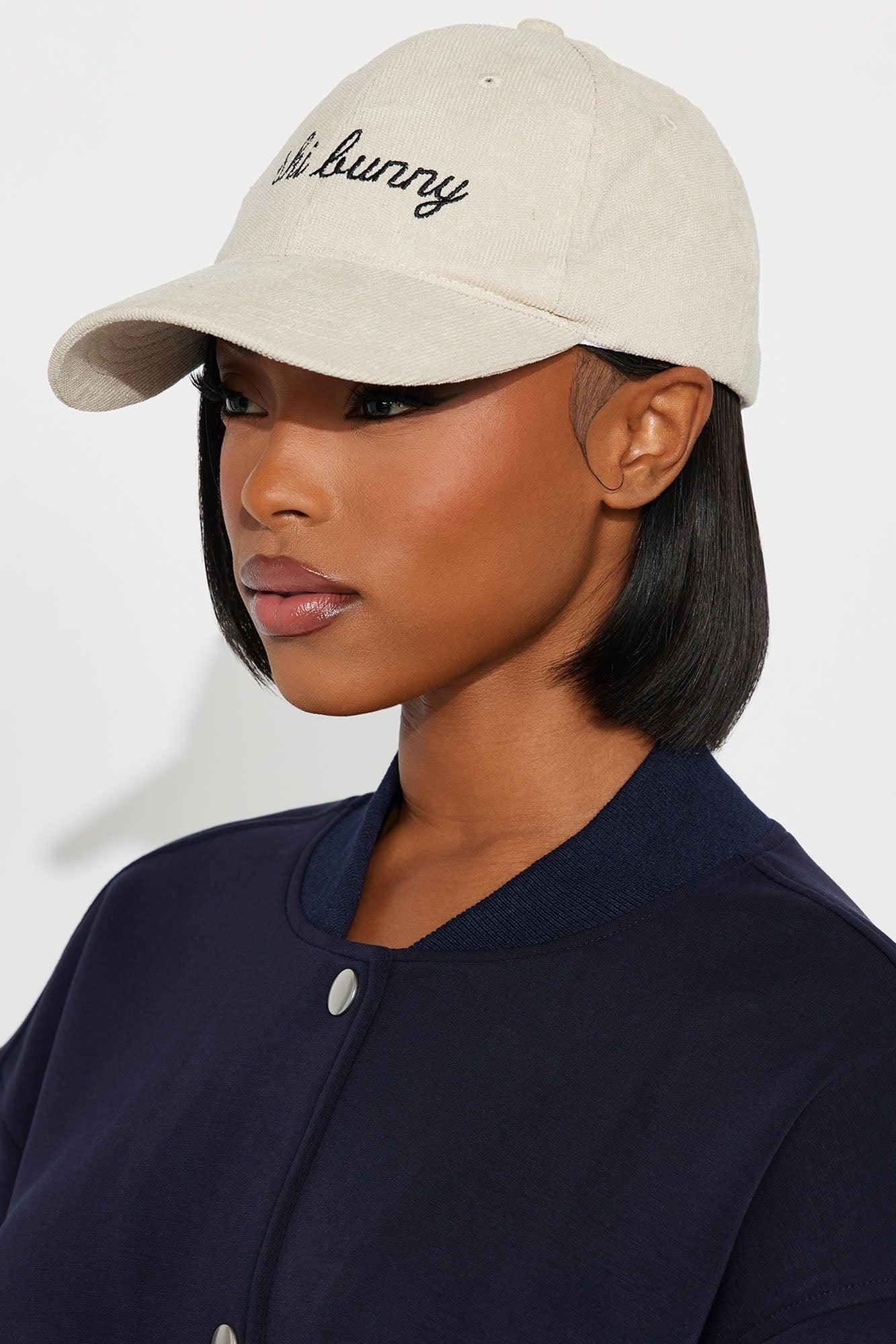 Available In Beige And Pink. Baseball Hat Ski Bunny Verbiage Detail Adjustable Corduroy Detail Imported California Proposition 65WARNING: Cancer and Reproductive Harm - www.P65Warnings.ca.gov.