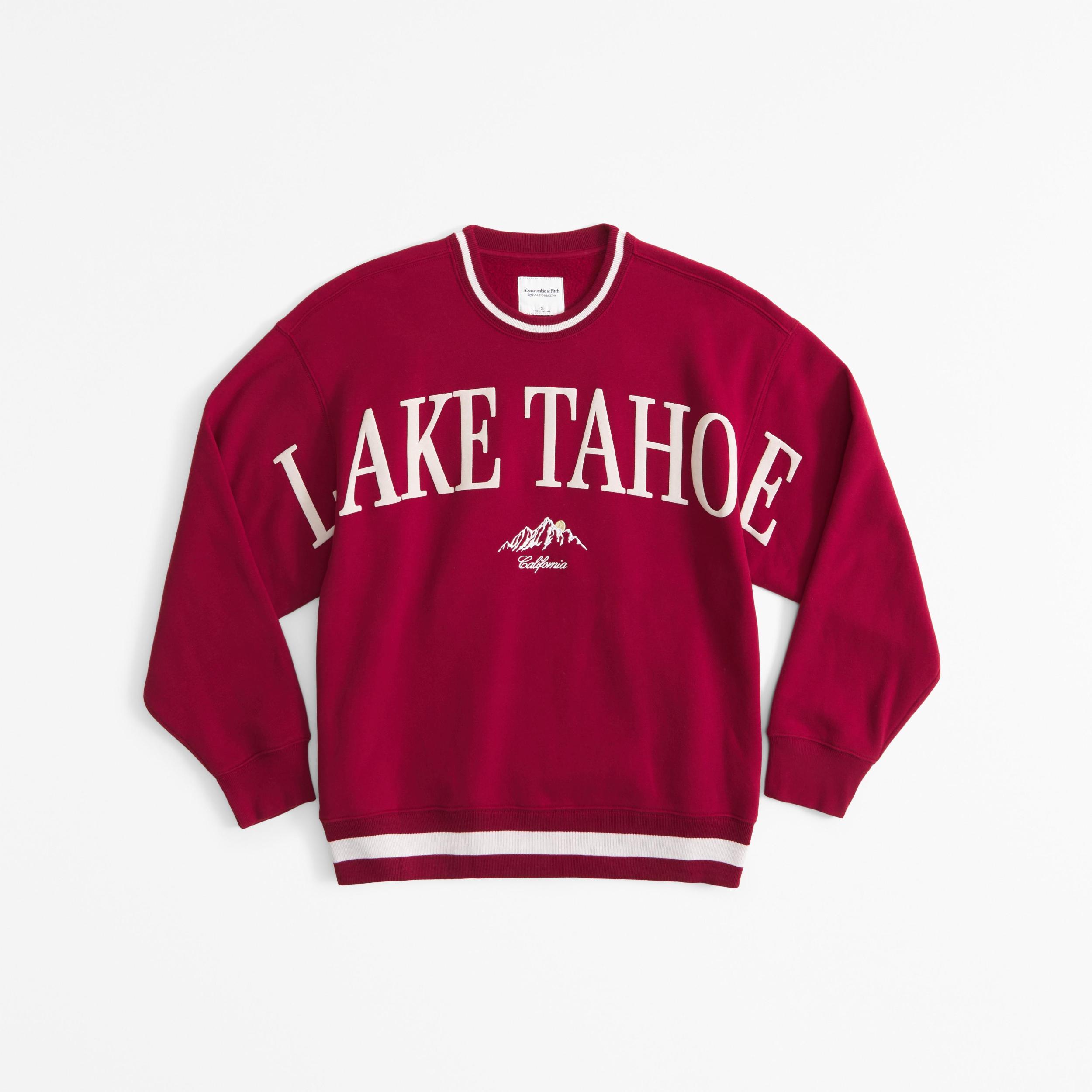Comfy sweatshirt in our Soft A&F MAX heavyweight fabric and legging-friendly length, featuring a relaxed chest width, ski destination-inspired graphic detail at chest, crew neckline and banded hem and cuffs.