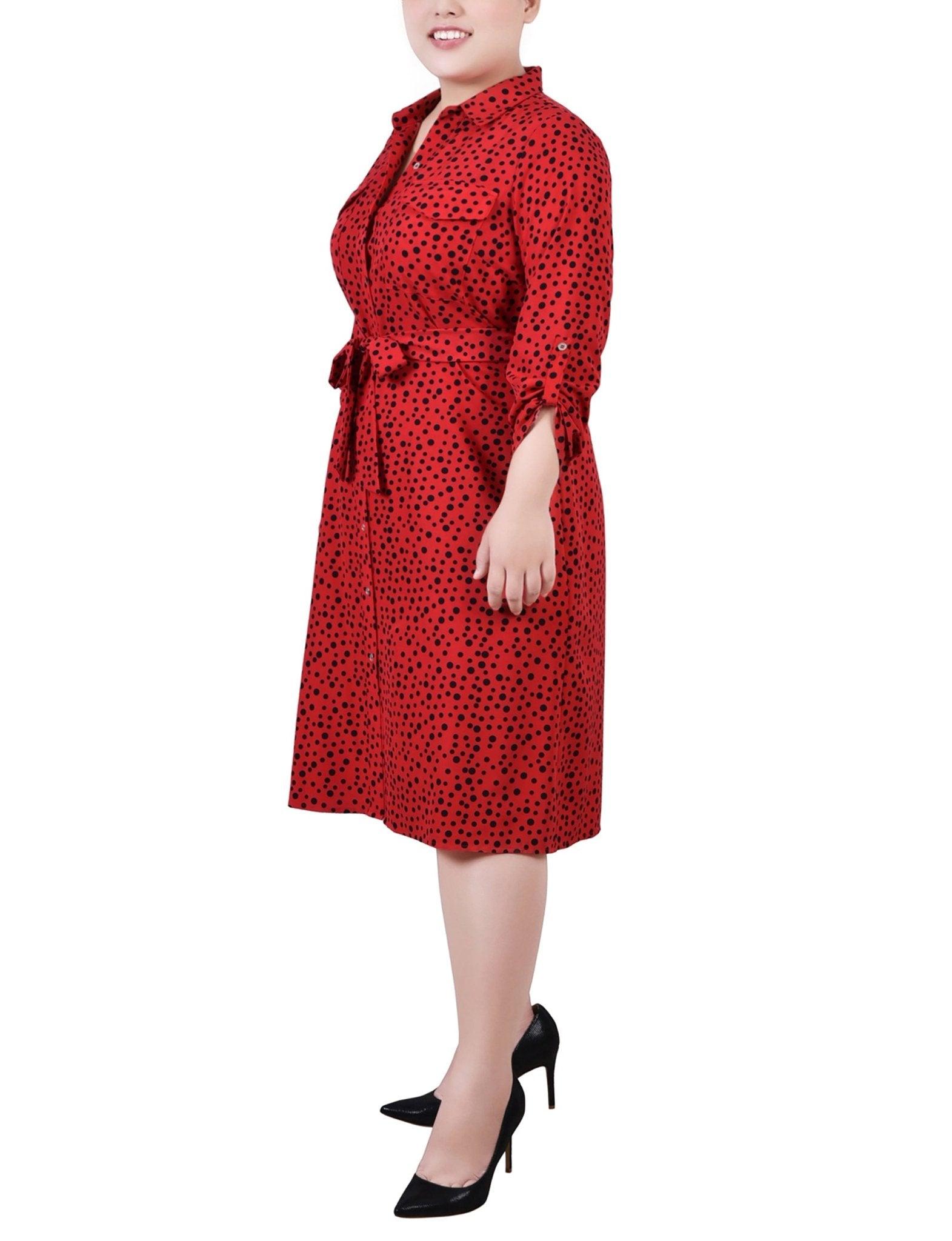 Ski Patrol Black Icemoon 3/4 Roll Tab Sleeve Belted Shirtdress - Plus