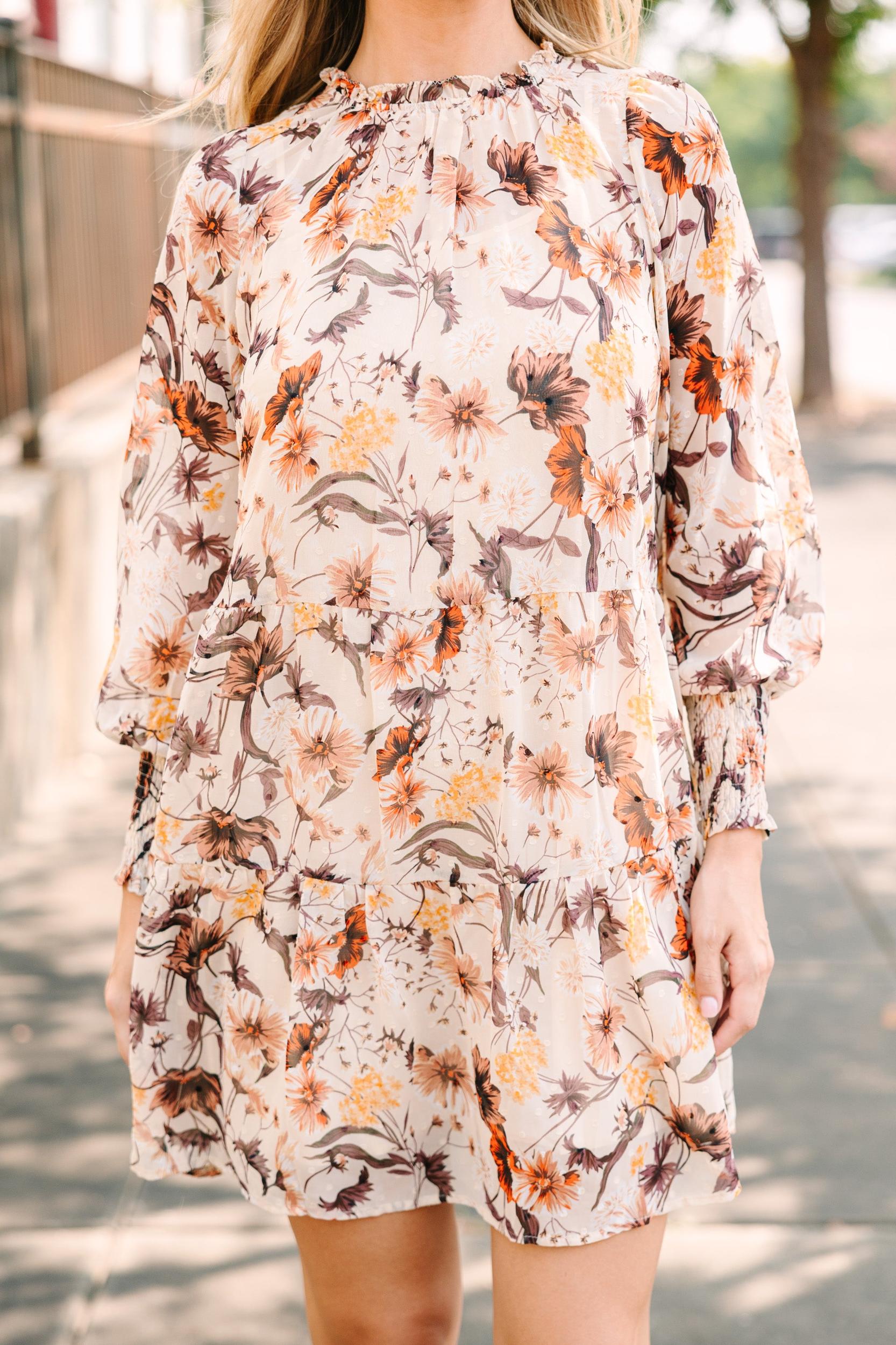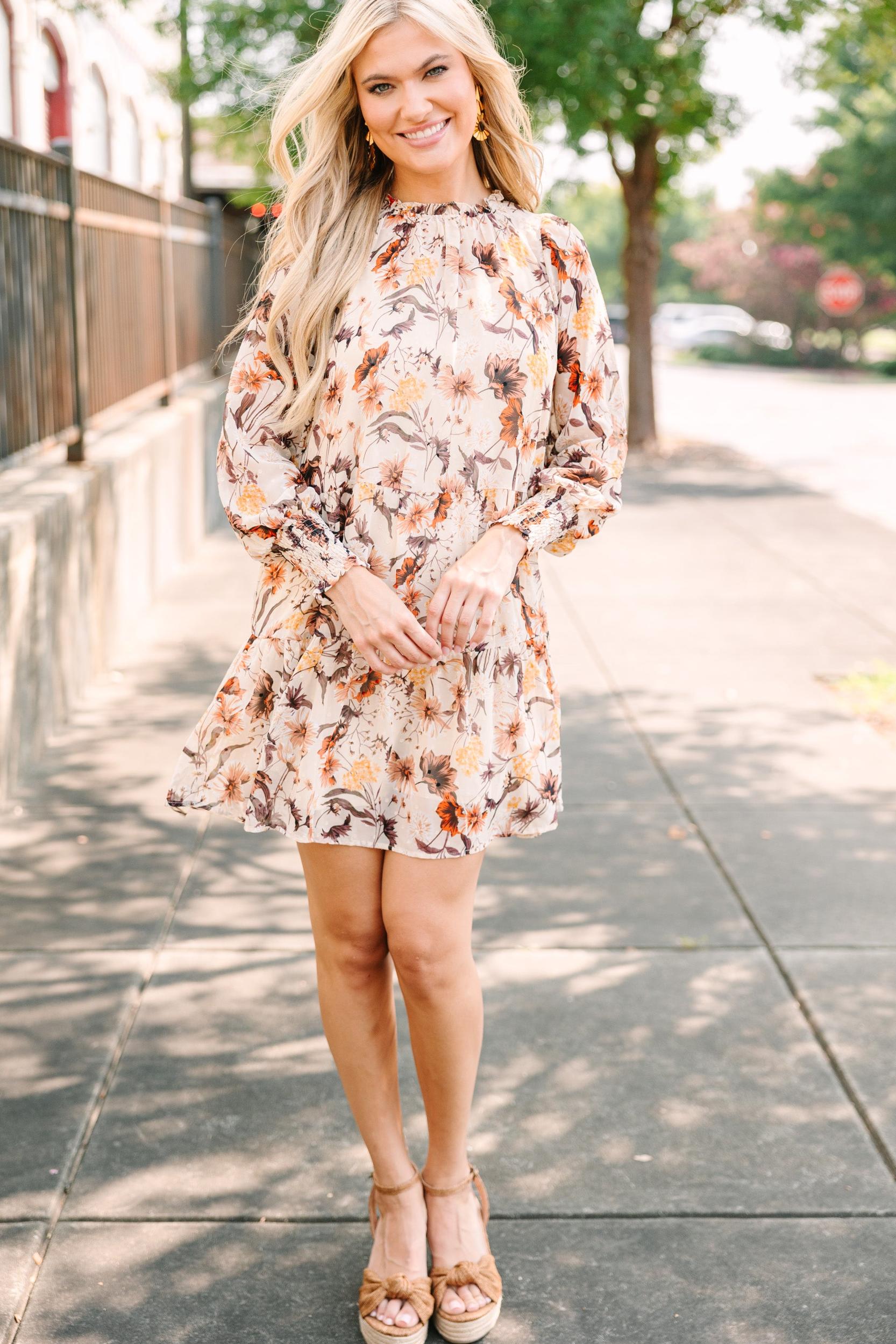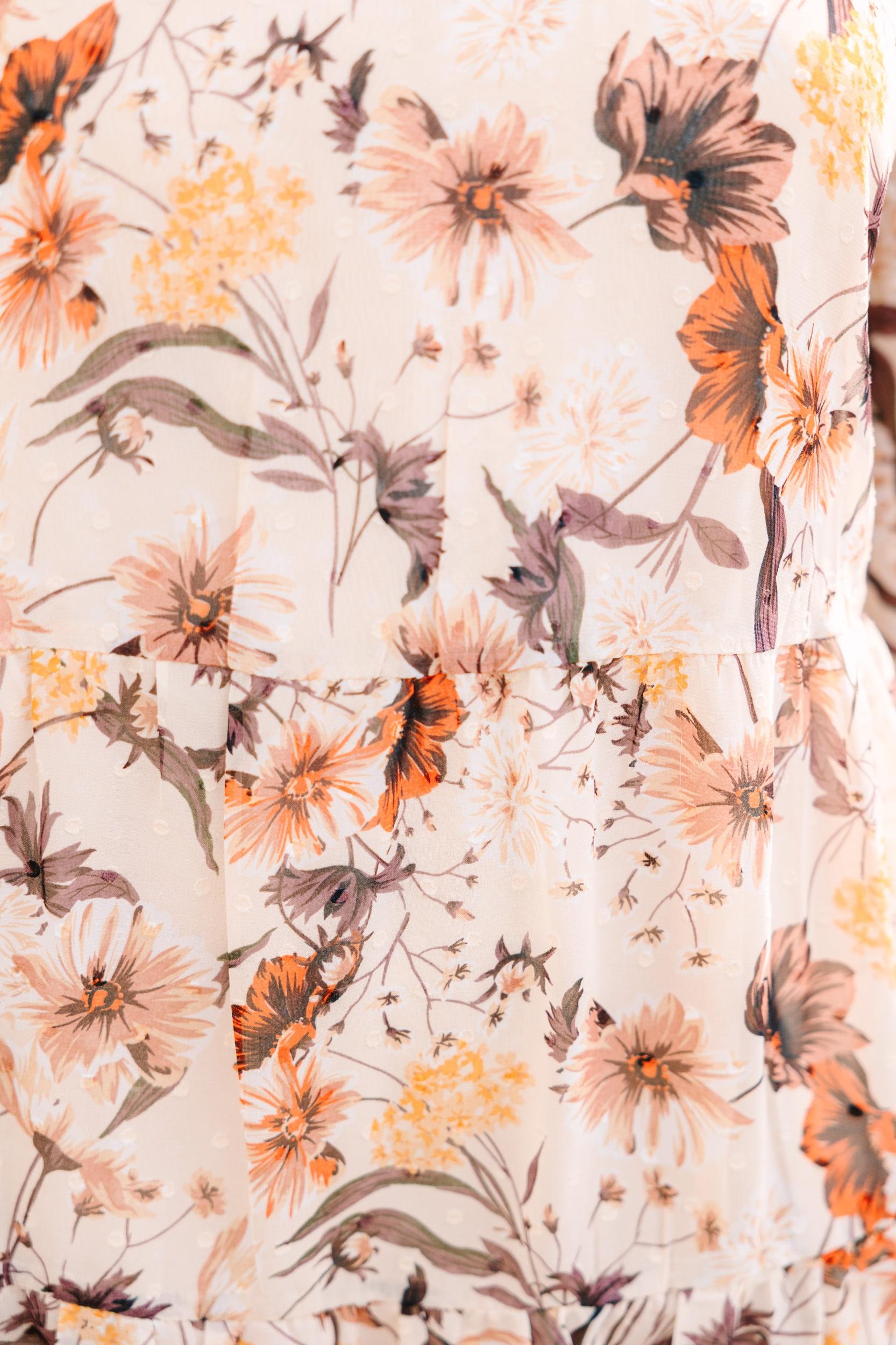 You are going to love adding your touch to this fabulous fall dress! That colors mixed with that floral print are stunning together! This dress is going to look fab with with everything from heels to boots! Round neckline Button keyhole back Long sleeve with smocked cuffs Floral print No stretch Baileigh is wearing the small.