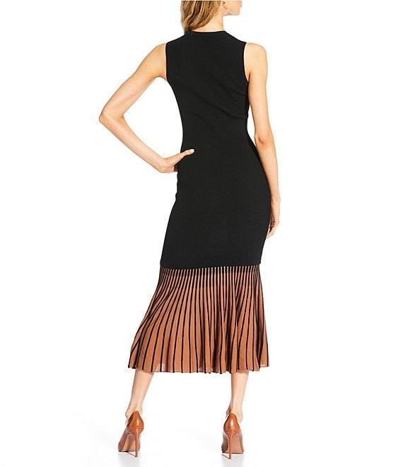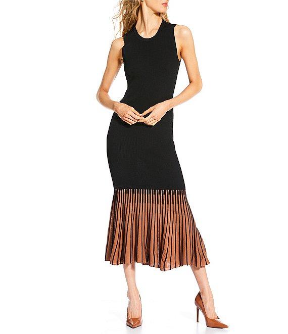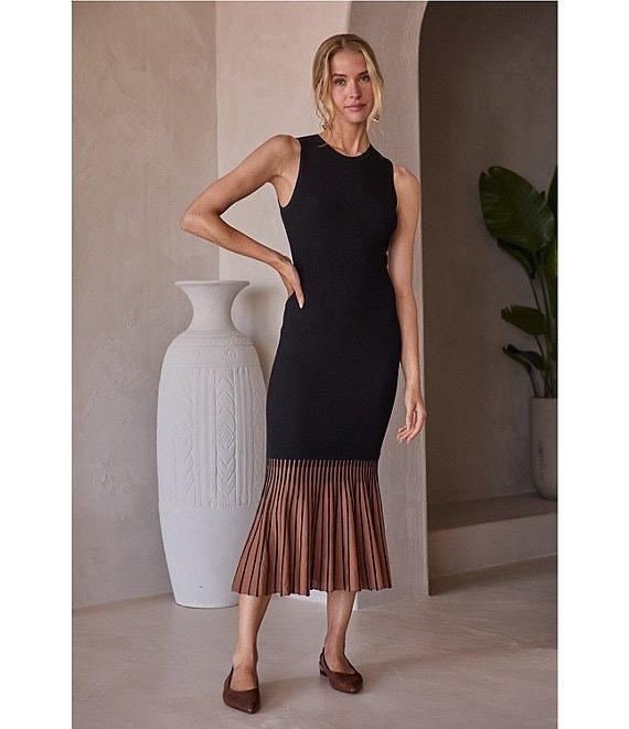 Skies Are Blue Contrast Godet Crew Neckline Sleeveless Knit Midi Dress