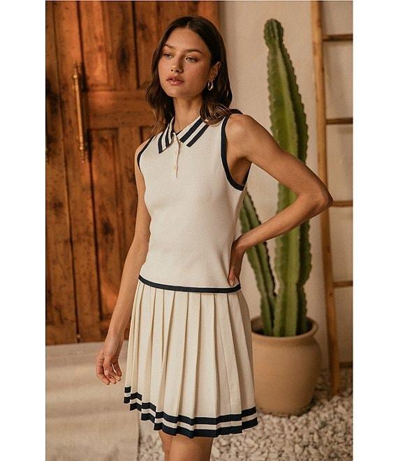 Skies Are Blue Contrast Trim Pleated Coordinating Skirt