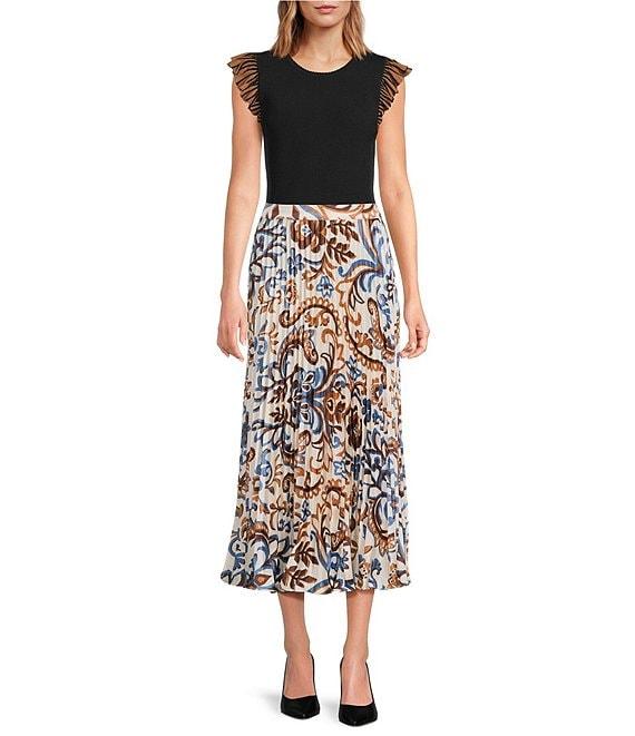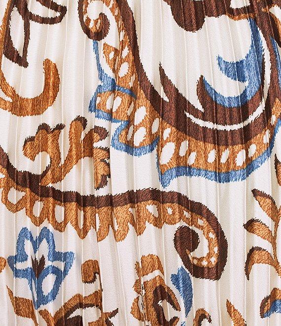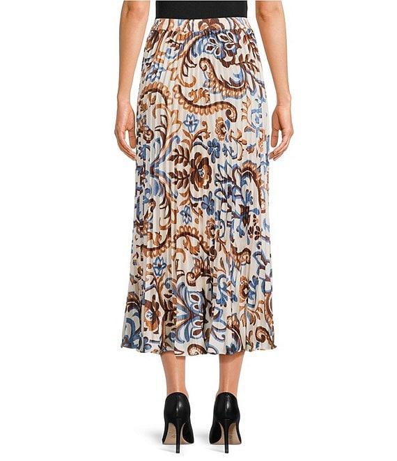 Skies Are Blue Coordinating Border Print Pleated Midi Skirt