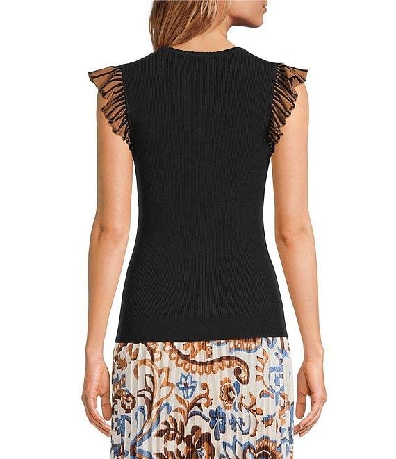 Skies Are Blue Crew Neck Contrast Ruffle Cap Sleeve Knit Top