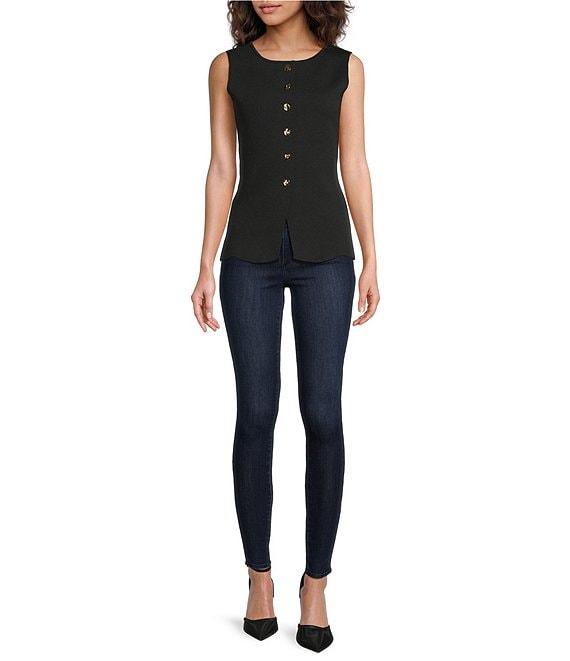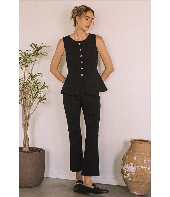 Skies Are Blue Crew Neck Sleeveless Button Front Knit Peplum Vest