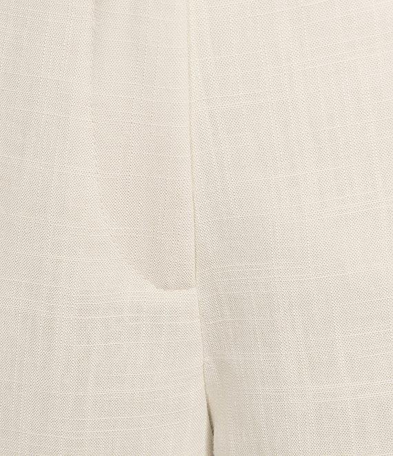 From Skies Are Blue, these shorts feature: Linen blend fabrication High-rise waistline Wide leg silhouette Front hook and zipper closure Back elastic waistband Side pockets Lined Approx. 15" length, 3.5" inseam, 14.25" leg opening Self: rayon/polyester/linen Lining: polyester/spandex Hand wash Imported.