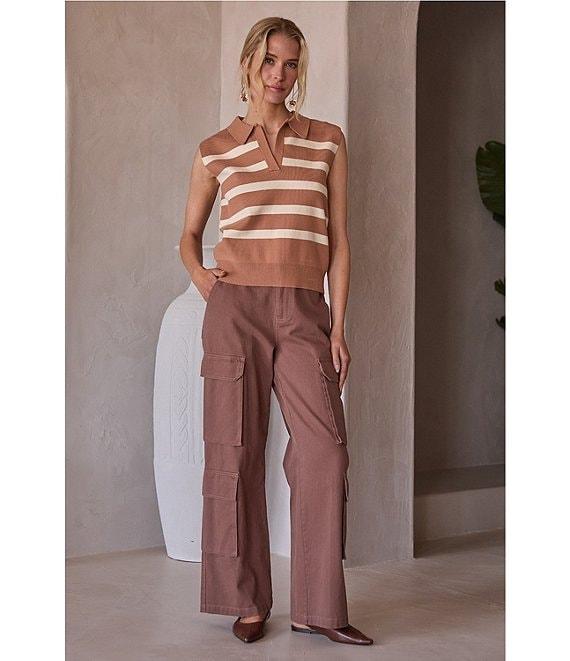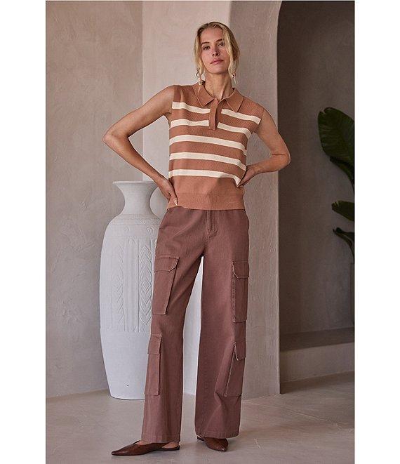Skies Are Blue Knit Striped Print V-Neck Sleeveless Top