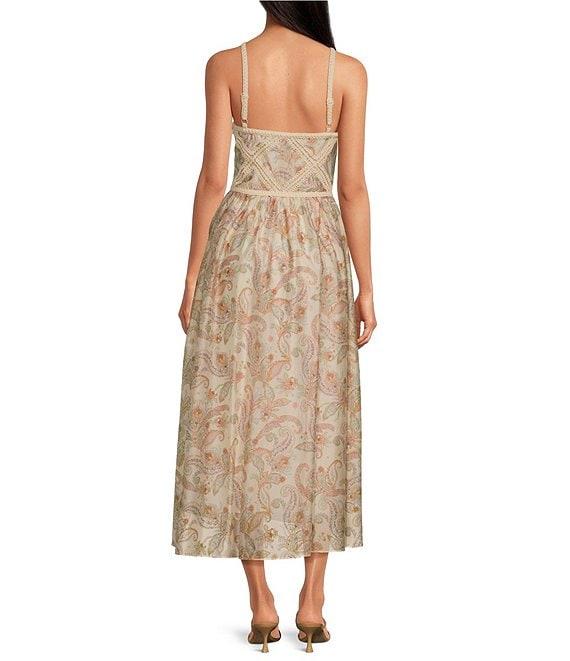 Skies Are Blue Paisley Halter Neck Macrame Embroidered Midi Dress