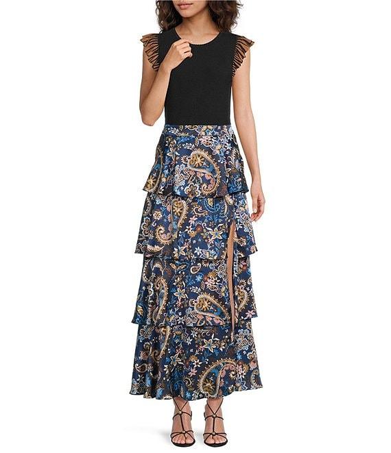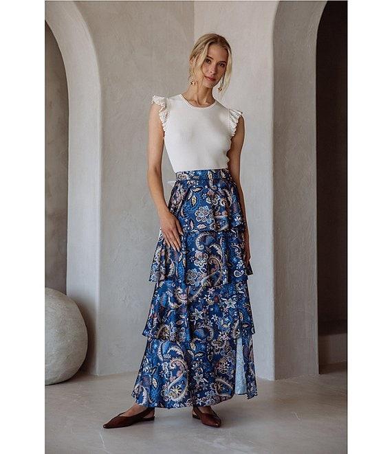 Skies Are Blue Paisley Printed Tiered Maxi Skirt