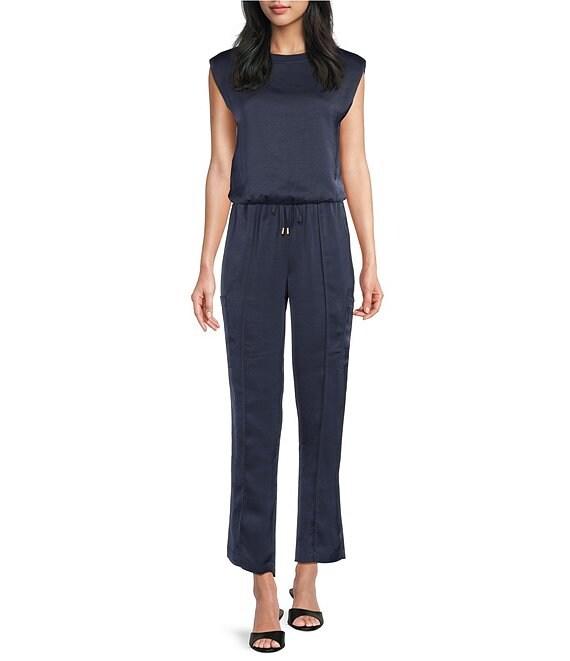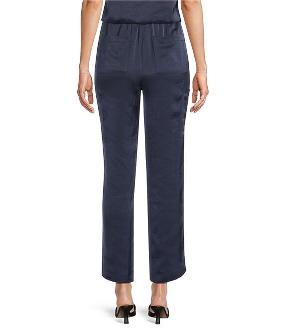 From Skies Are Blue, these pants feature: High-rise waistline Pull-on construction Drawstring waist Straight-leg silhouette Side pocket detail Lined Ankle length Approx. 39" length; 28" inseam; 8" leg opening Polyester Hand wash Imported.