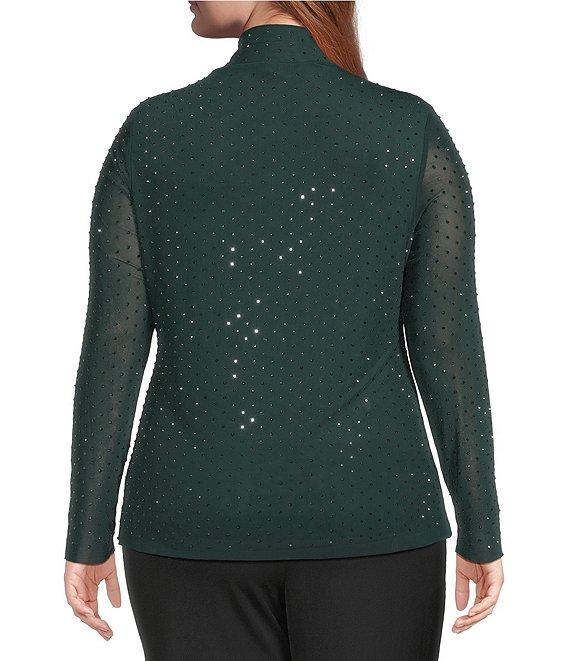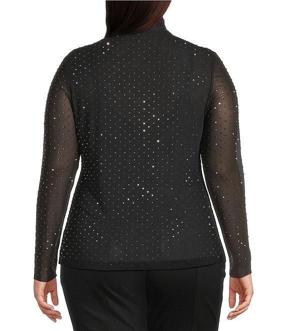 Skies Are Blue Plus Embellished Mock Neck Long Sleeve Mesh Top