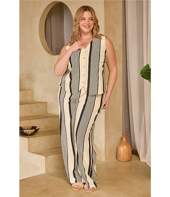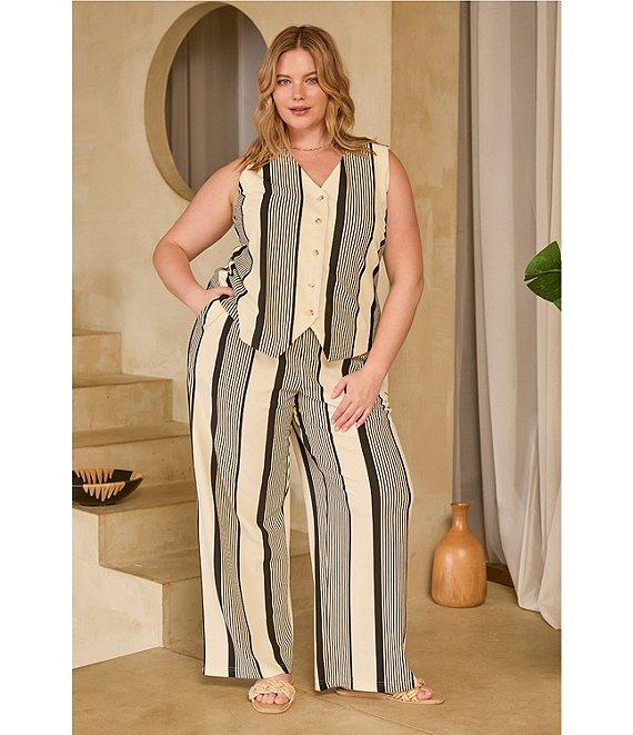 Skies Are Blue Plus High Rise Variegated Stripe Wide Leg Knit Coorinating Pants