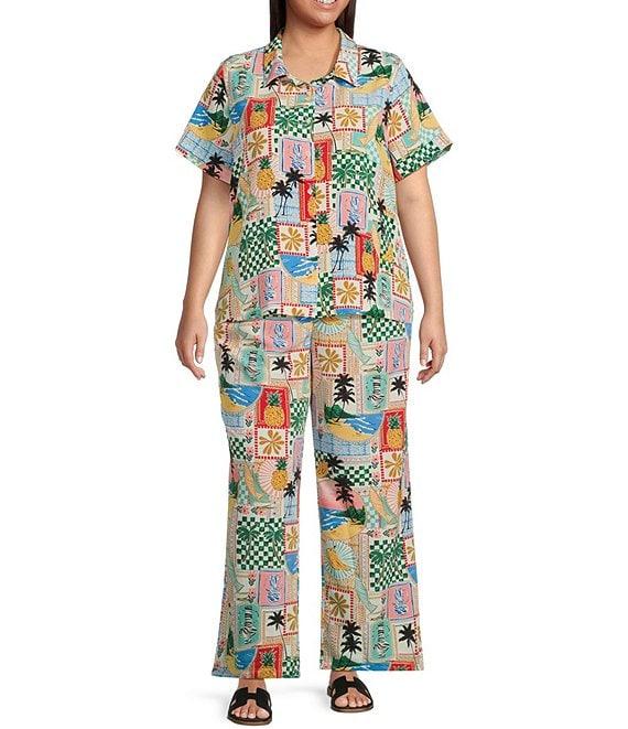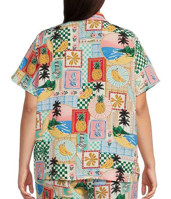 Skies Are Blue Plus Postcard Printed Short Sleeve Woven Coordinating Shirt