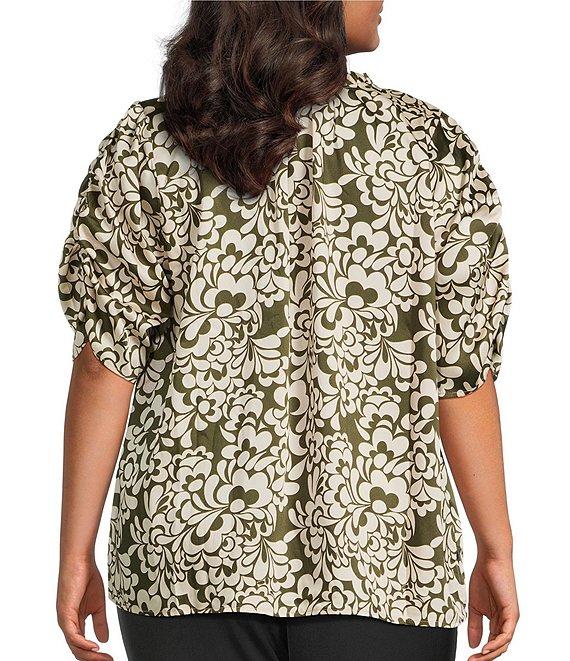 Skies Are Blue Plus Printed Split V-Neck Short Sleeve Top