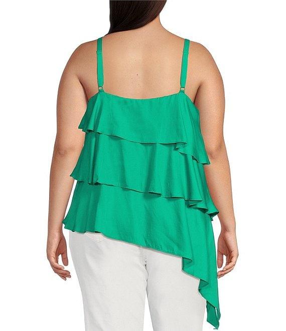 Skies Are Blue Plus Size Asymmetrical Ruffle Tiered Top