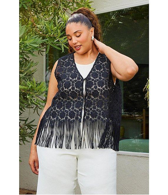 Skies Are Blue Plus Size Crochet Fringe Vest