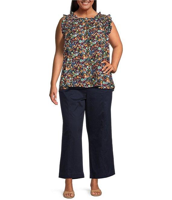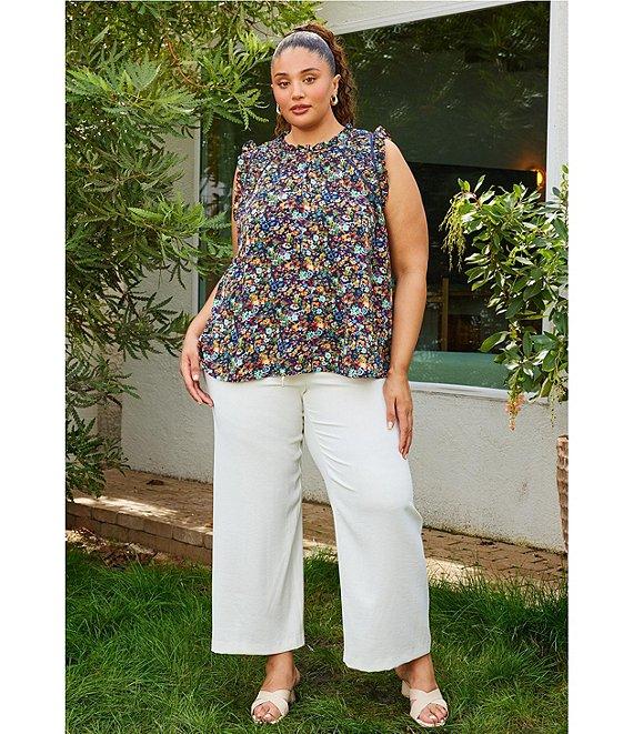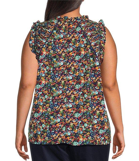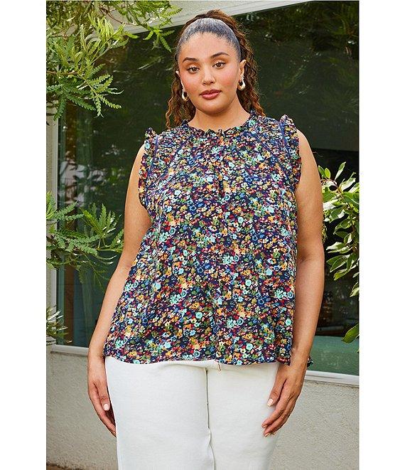 Skies Are Blue Plus Size Ditsy Floral Ruffle Sleeveless Top