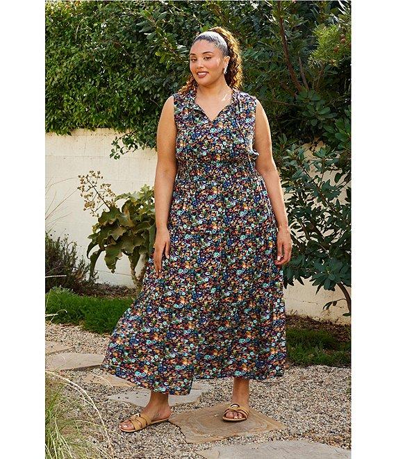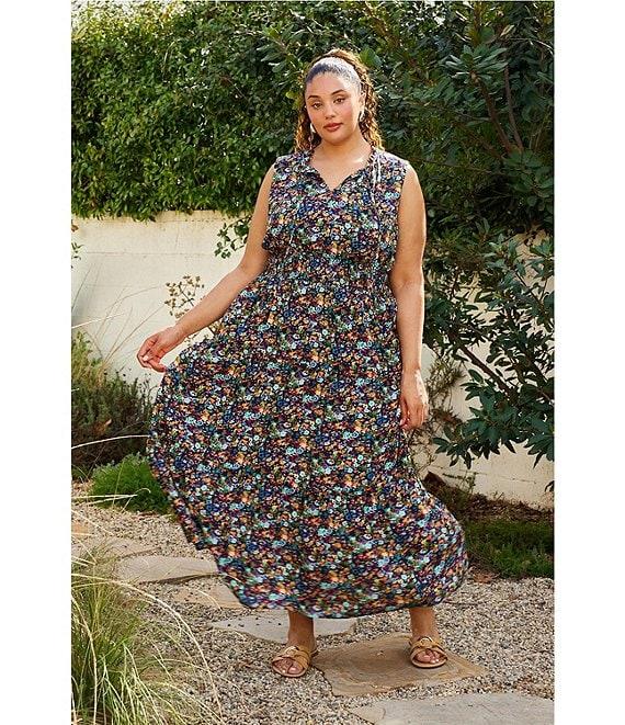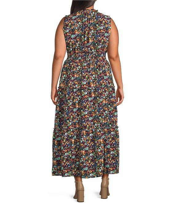 Skies Are Blue Plus Size Ditsy Floral Tiered Maxi Dress