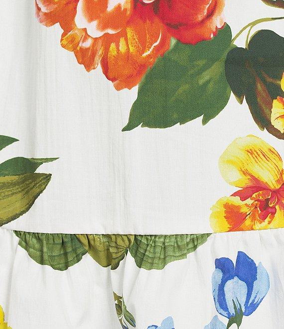 Skies Are Blue Plus Size Floral Border Printed V-Neck Long Sleeve Poplin Mini Dress