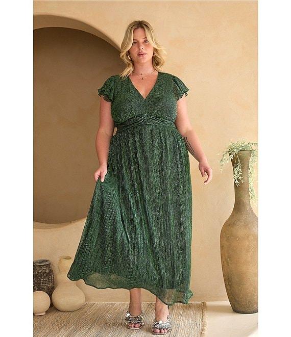 Skies Are Blue Plus Size Lurex V-Neck Short Flutter Sleeve Maxi Dress