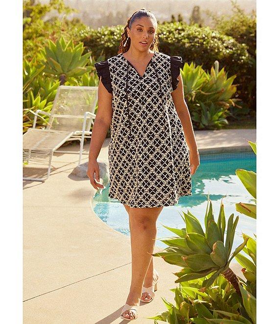 From Skies Are Blue Plus, this dress features: Macrame embroidered fabrication Textured Split round neckline Flutter sleeves Pullover styling Cotton/polyester Hand wash/line dry Imported.