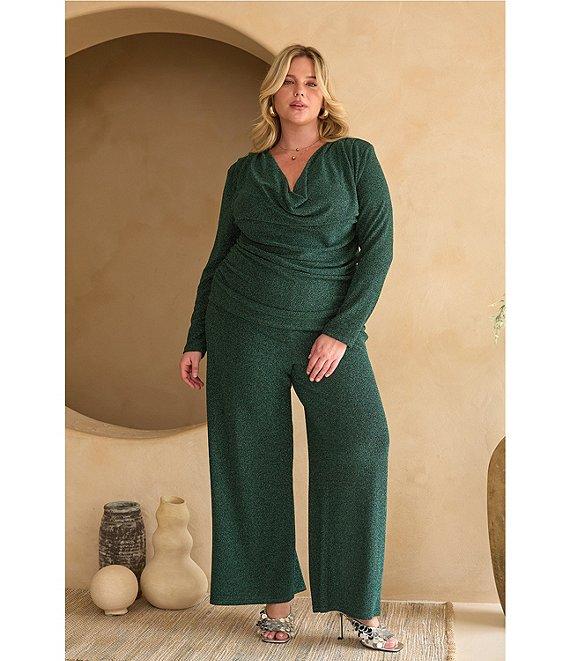 Skies Are Blue Plus Size Metallic Lurex High Waist Wide Leg Coordinating Pants