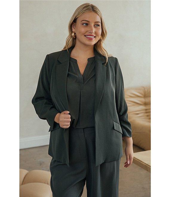 Skies Are Blue Plus Size Notch Lapel Shirred 3/4 Sleeve Open Front Coordinating Statement Blazer