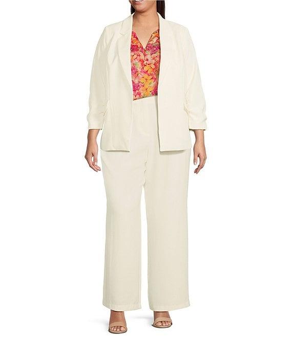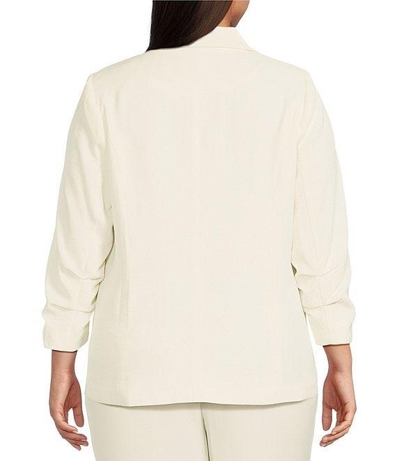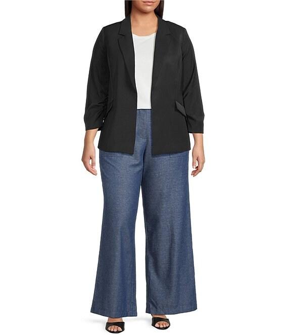 Skies Are Blue Plus Size Notch Lapel Shirred 3/4 Sleeve Open Front Coordinating Statement Blazer