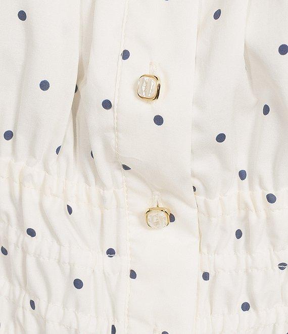 From Skies Are Blue Plus, this top features: Polka dot print Square neckline Long sleeves Pullover construction Smocked waist detail Elastic at waist and sleeve opening Front button detail Peplum hemline Approx. 27.5" length Cotton Hand wash Imported.