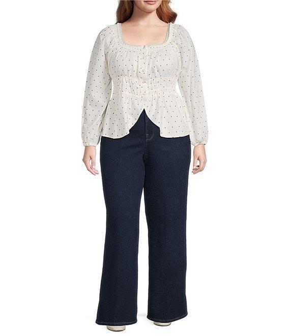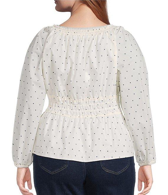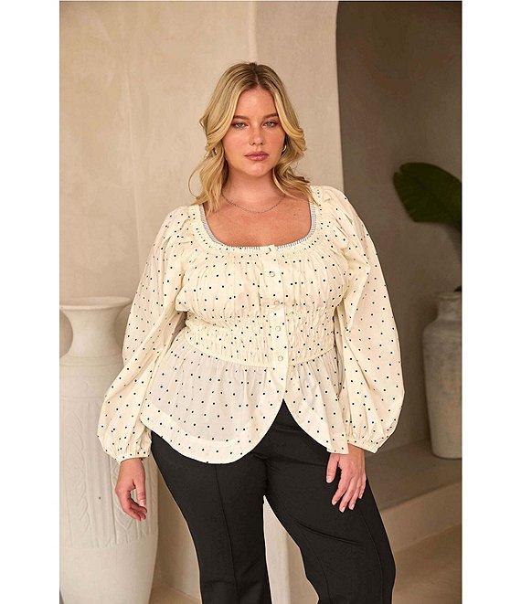 Skies Are Blue Plus Size Polka Dot Square Neck Long Sleeve Top