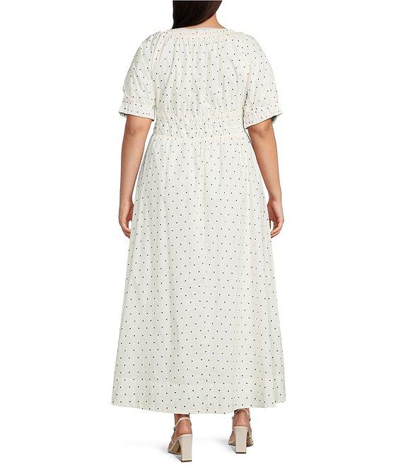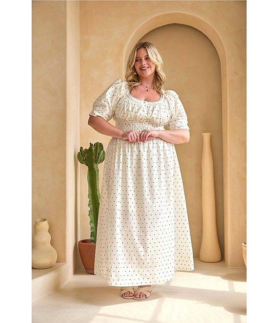 Skies Are Blue Plus Size Polka Dot Square Neck Short Sleeve A-Line Maxi Dress