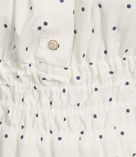 From Skies Are Blue Plus, this dress features: Polka dot print Square neckline Short sleeves Pullover construction A-line silhouette Front button detail Smocked bodice Approx. 56" length Cotton Hand wash Imported.