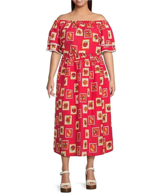 Skies Are Blue Plus Size Postcard Coordinating Midi Skirt