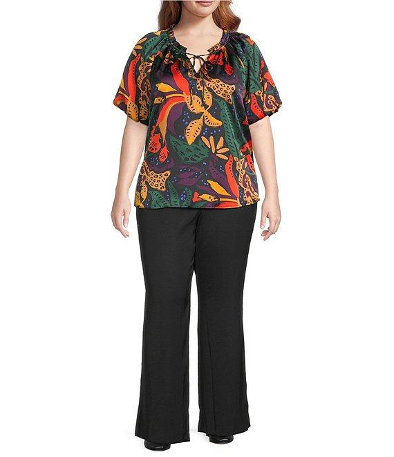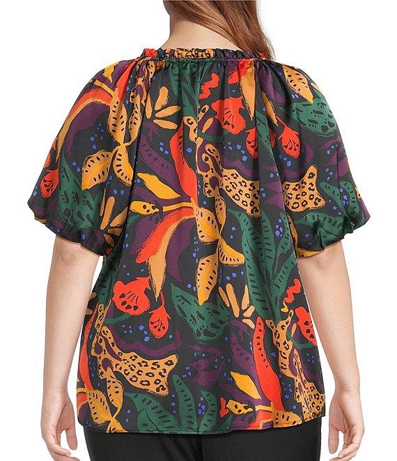 Skies Are Blue Printed Split Neck Short Sleeve Top
