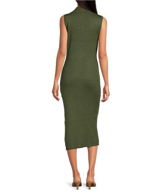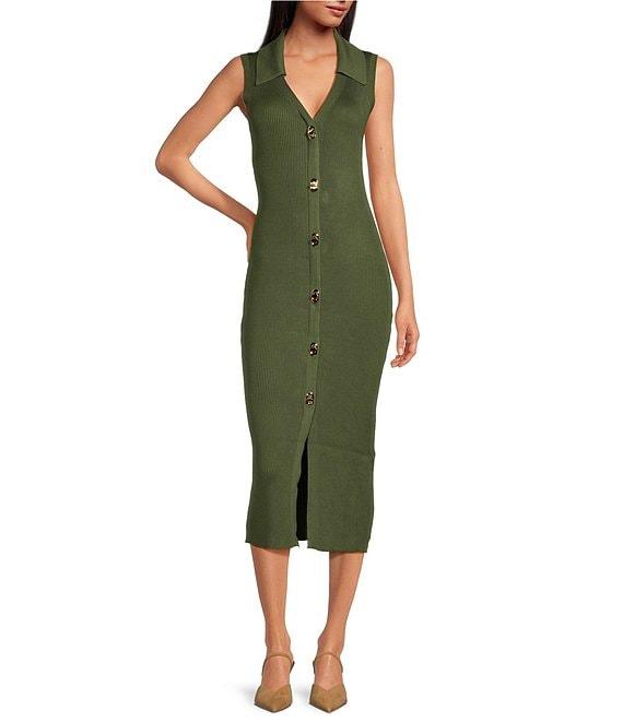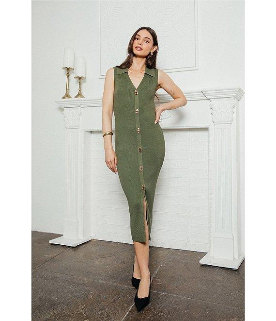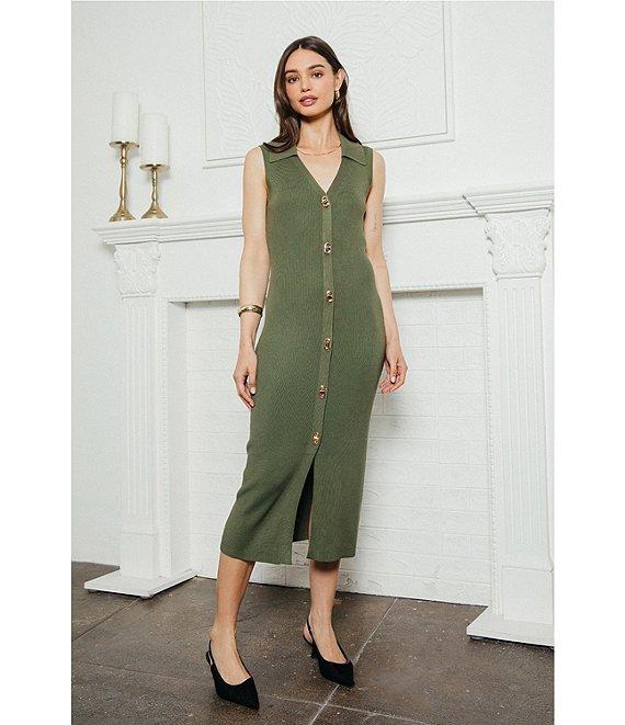 Skies Are Blue Rib Knit V Neck Sleeveless Button Front Midi Dress