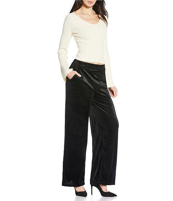 Skies Are Blue Ribbed Knit Rhinestone Embellished V-Neck Flared Long Sleeve Sweater