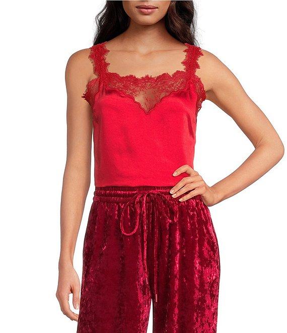 Skies Are Blue Satin V-Neck Sleeveless Delicate Lace Trimmed Cami