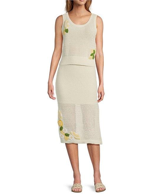 From Skies Are Blue, this tank features: Crotchet fabrication Scoop neckline Sleeveless Pullover construction Crochet lemon appliques Approx. 18.75" length Cotton Machine wash, line dry Imported.