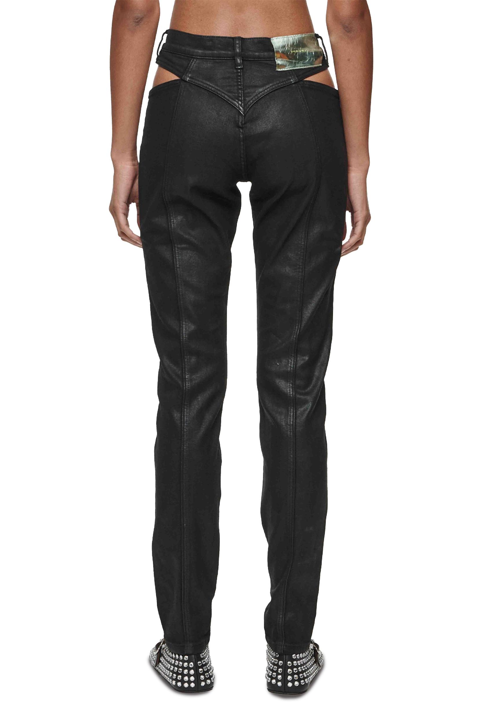 Skinny Fit Stretch Black Coated Cut Out Details at Hip Front Zipper Fly