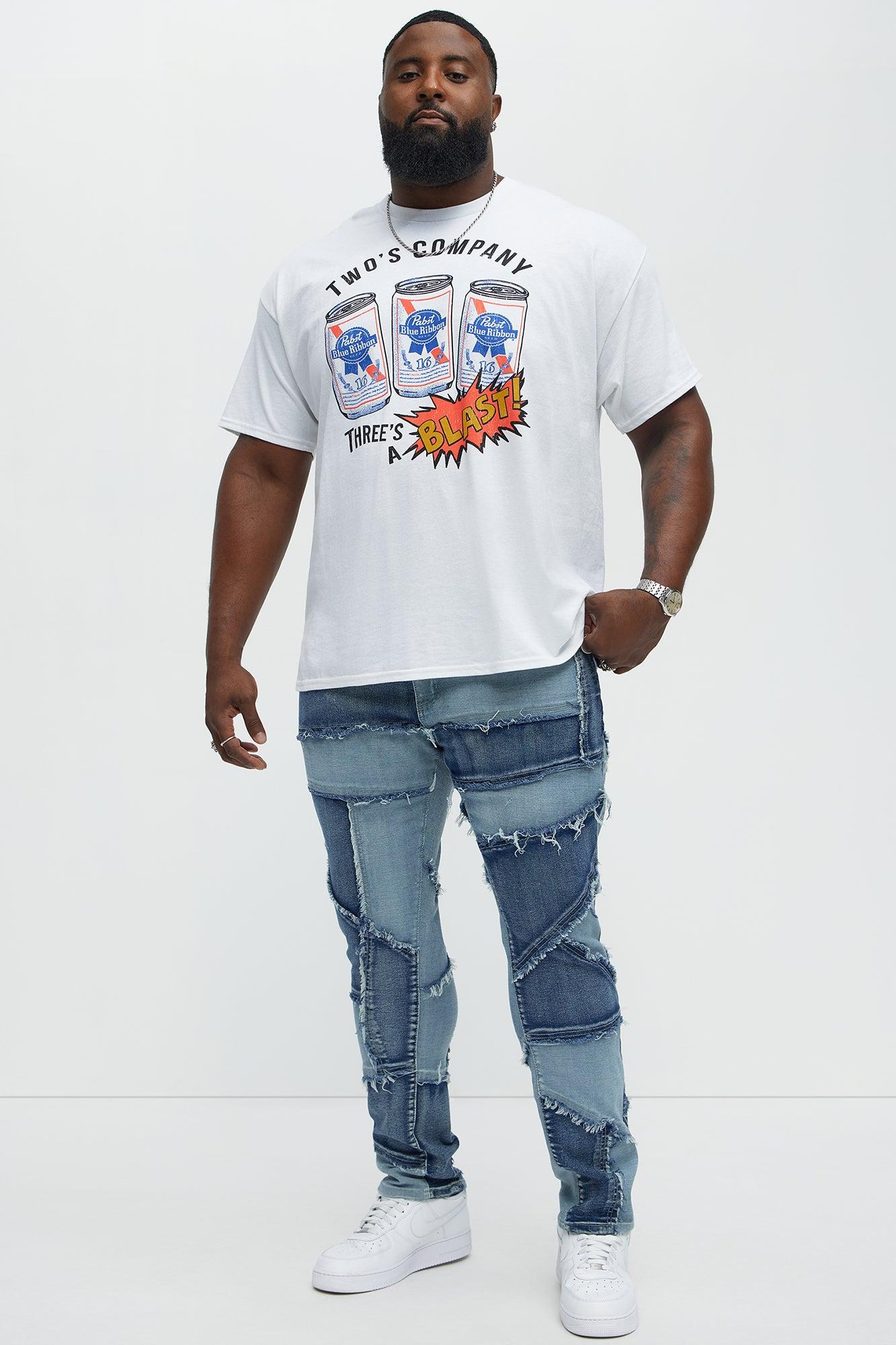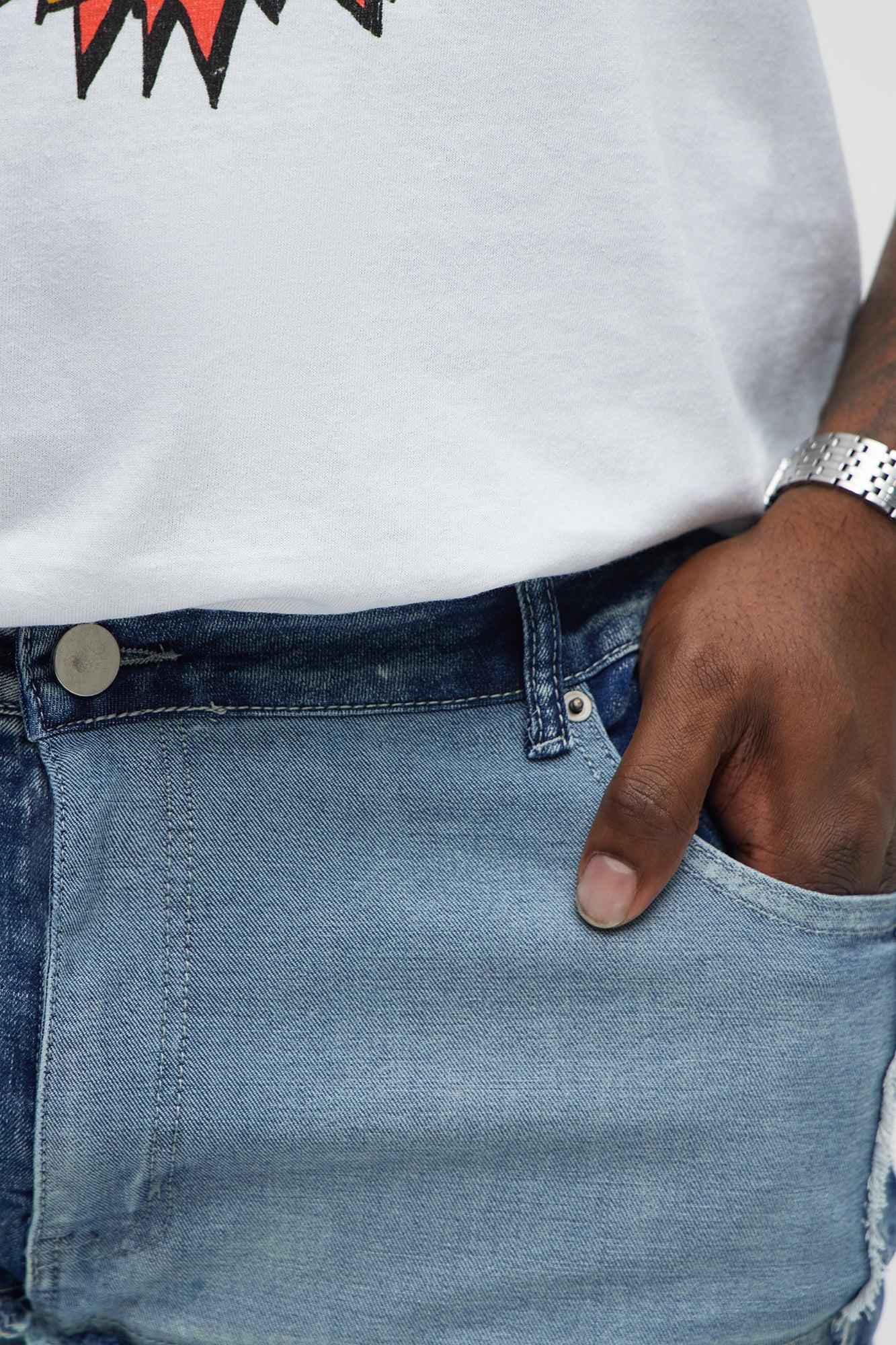 Available In Medium Blue Wash. Skinny Fit Zip Fly Button Closure 5 Pocket Detail Panel Fray Detail 82% Cotton, 16% Polyester, 2% Spandex Disclaimer: Due To The Specialized Distressing & Wash Process, Each Garment Is Unique. Imported
