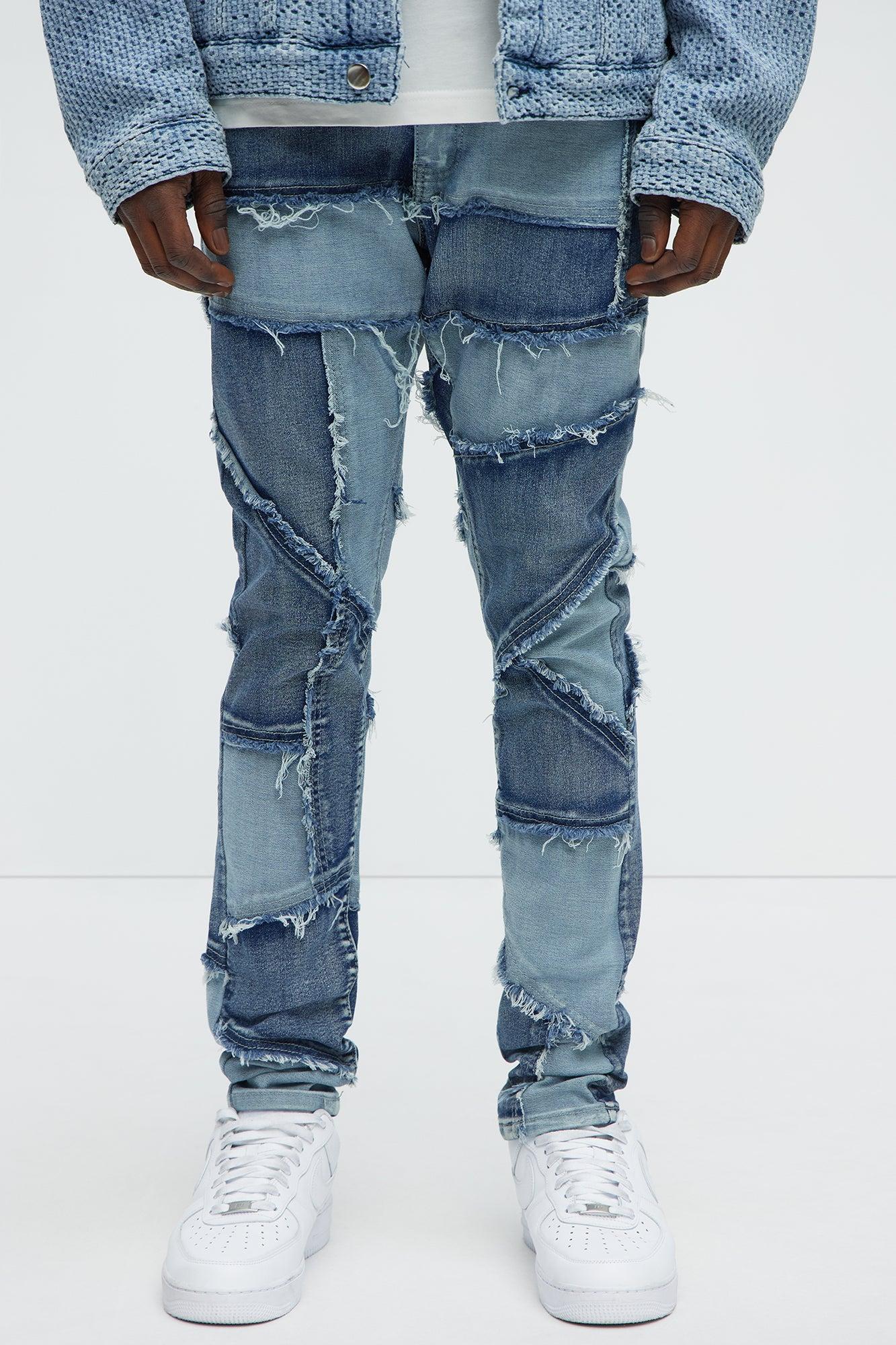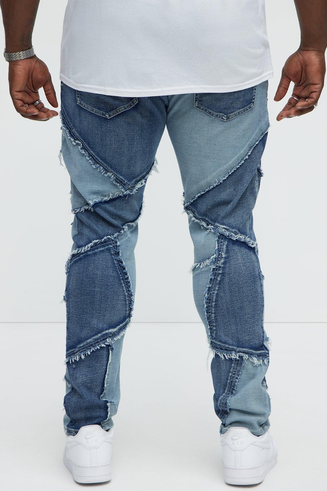 Skinny Patch It With Fray Jeans - Medium Blue Wash