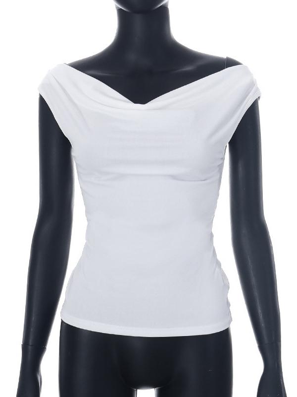 This skinny sleeveless top combines a backless design with a solid color and split-joint details for a chic, off-the-shoulder look. The tied accents add a stylish touch, perfect for summer outings or evening events.