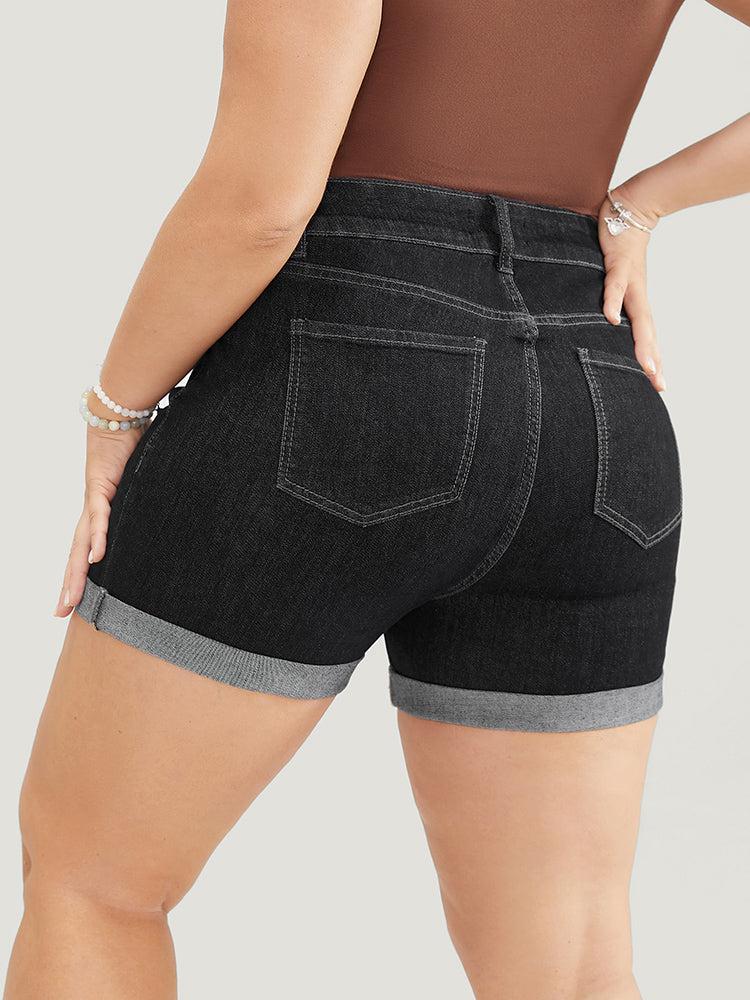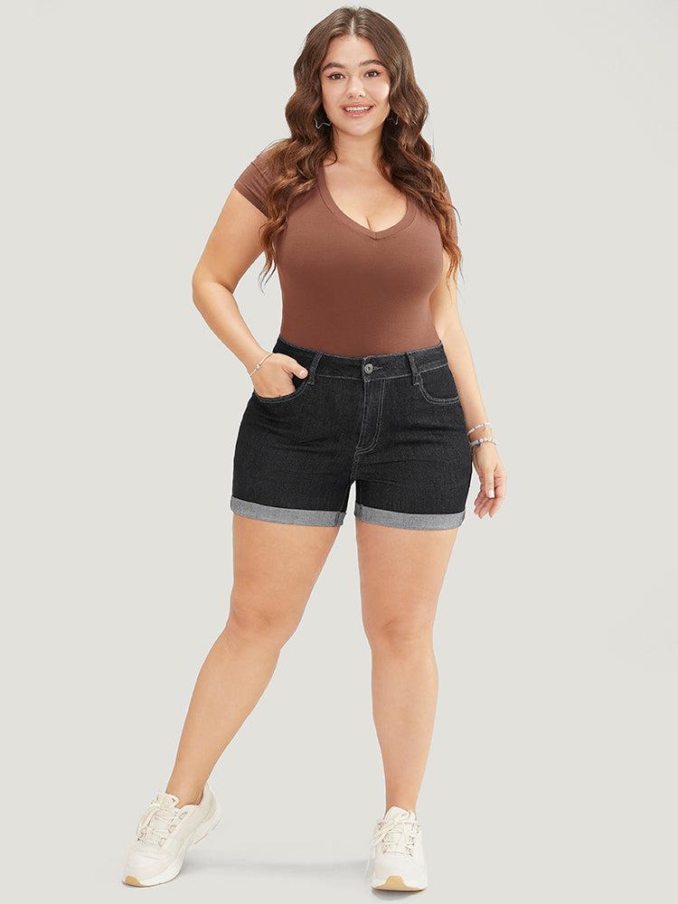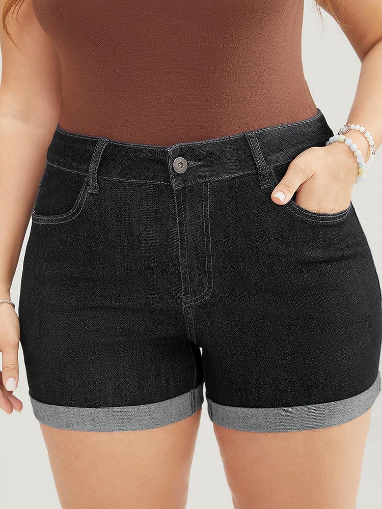 Shop Skinny Very Stretchy Dark Wash Cuffed Hem Denim Shorts now and redefine your style with confidence at BloomChic. Tailored for mid and plus-size women. This trendy Denim Women, sizes 10-30. Color:Black;Style:Casual;Pattern Type:Plain;Pocket:It is perfectly sized to carry a phone.;Belt:No-belt;Closure Type:Zipper;Wash:Dark Wash