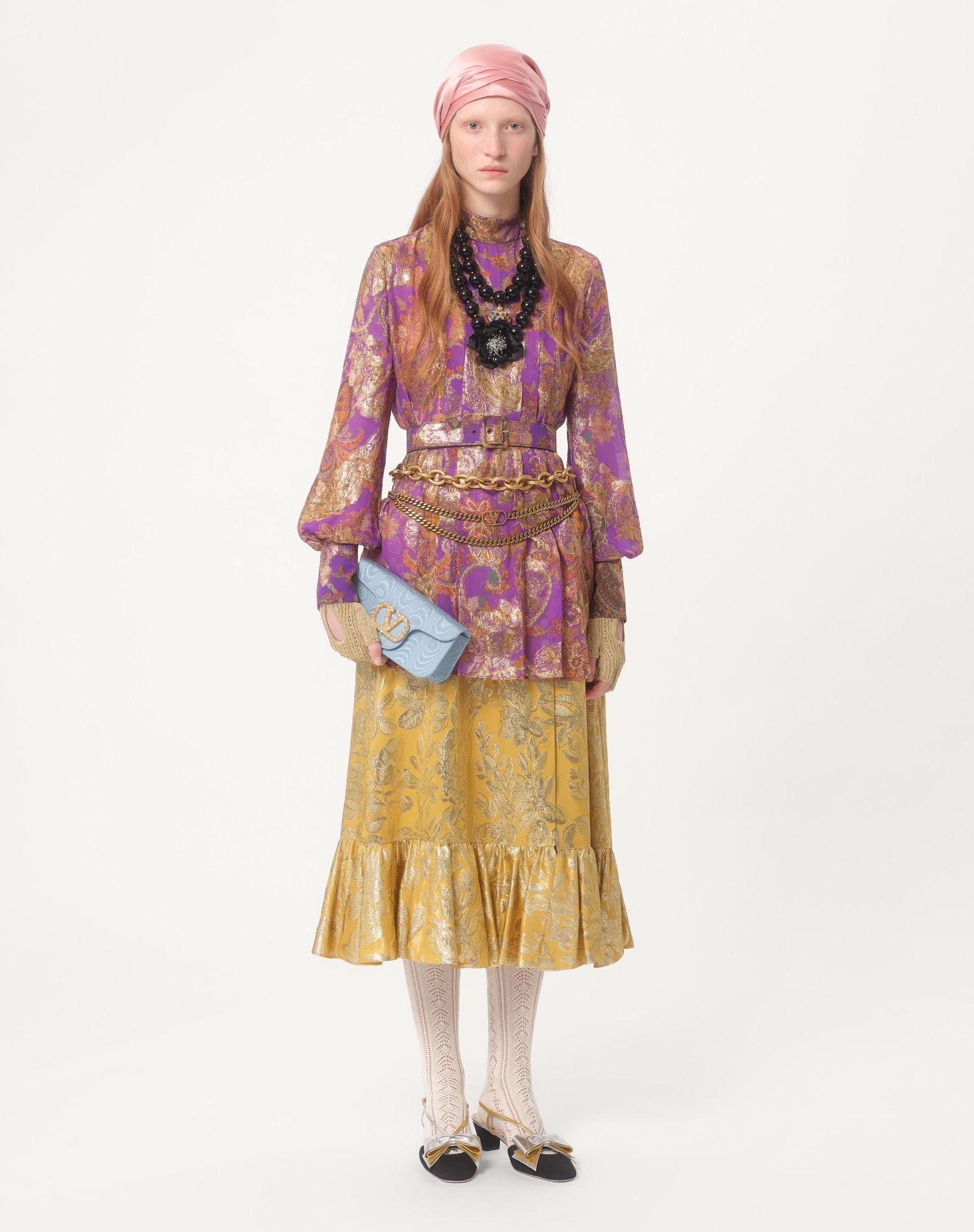 Visit the Valentino Online Boutique and discover Skirt In Apres L'hiver Silk Lurex Foglioline for Woman. Complimentary shipping and returns.
