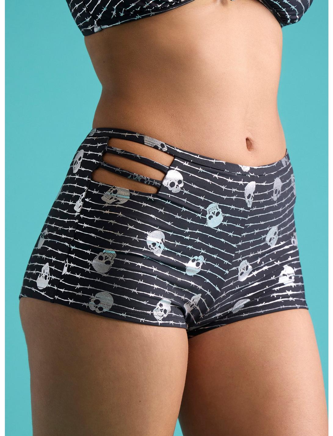 Skull & Barbed Wire Boyshort Swim Bottoms