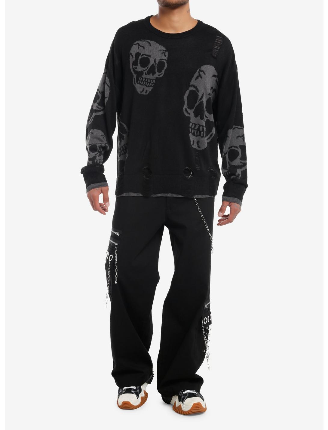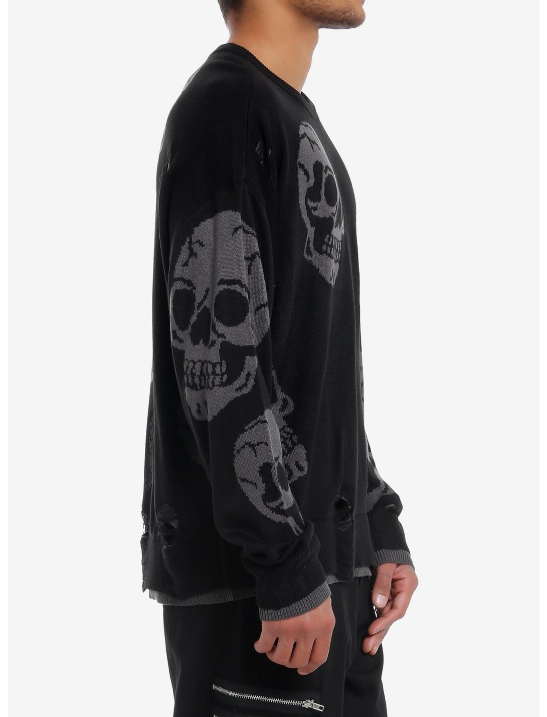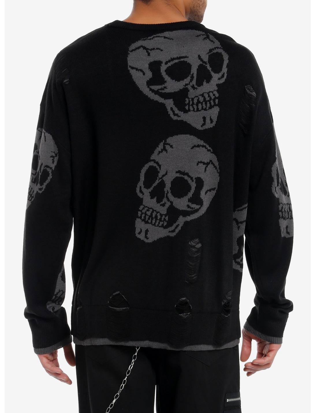 Add the skull-timate sweater to your wardrobe now! This knit sweater has different sized skull intarsia all over, plus distressed detailing.100% acrylicWash cold; dry flatDistressed detailsImportedListed in men's/unisex sizesModel is 6'1"Model wears size Medium