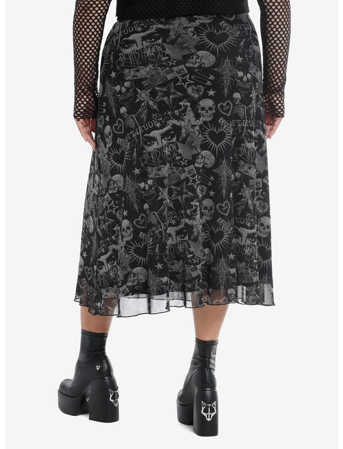Skulls & Spiked Hearts Mesh Midi Skirt Plus Size
