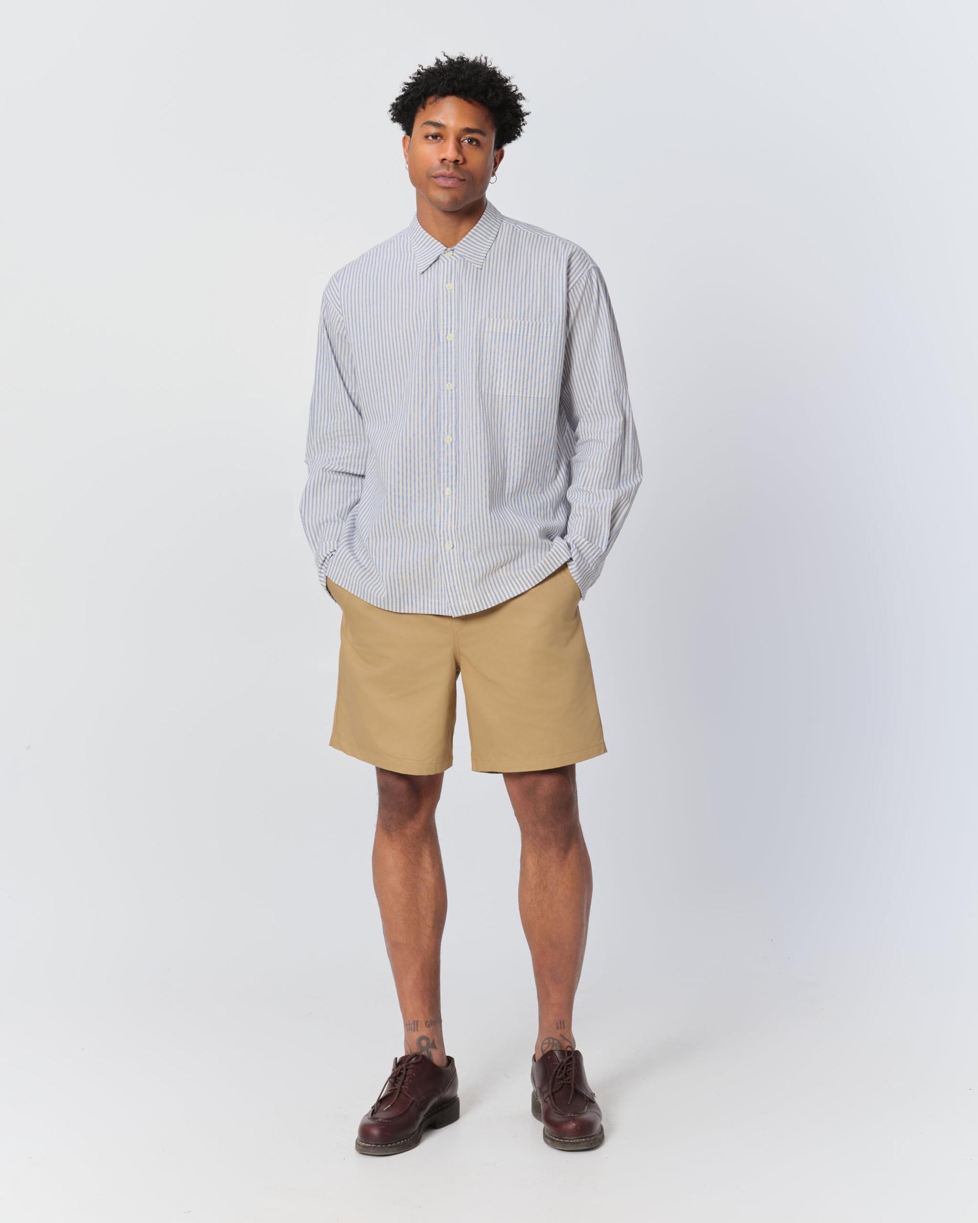 Short-sleeve yarn-dyed seersucker shirt
